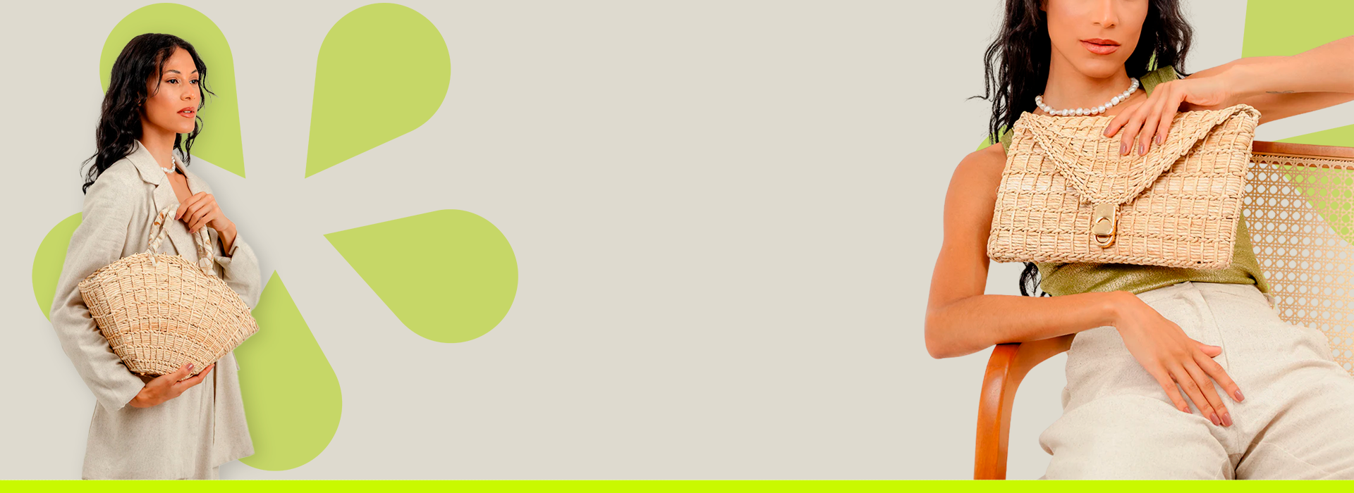 Bolsa artesanal Parrot Paradise – Fibra de palha natural com lantejoulas enfeitadas e alça de resina